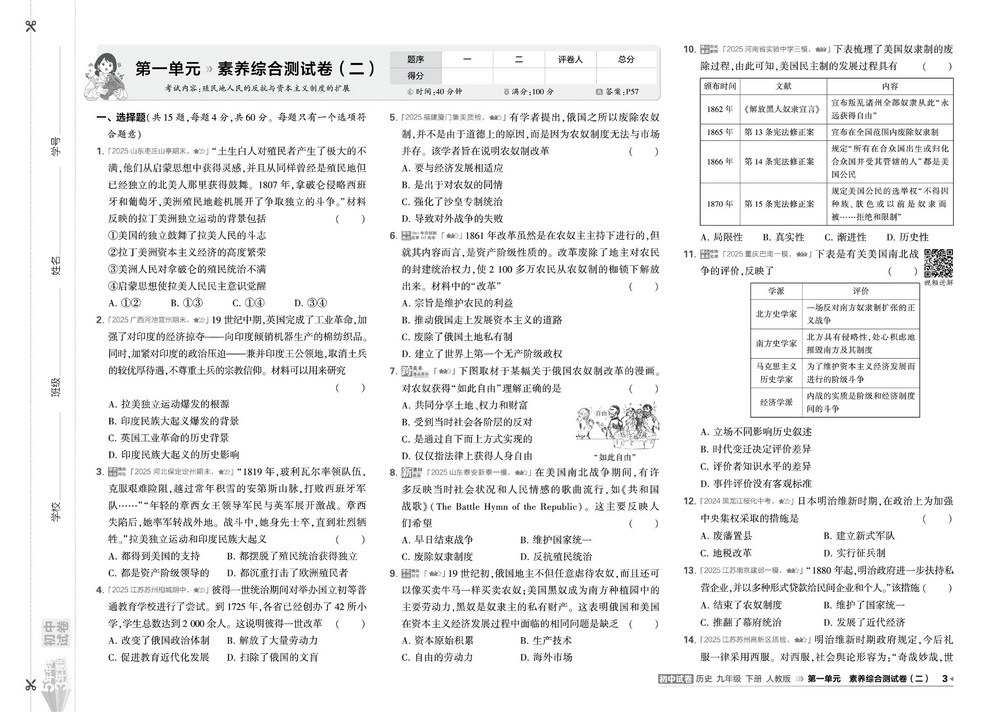 时间:120分钟 / 总分:120分/ 栏目:九年级历史2025-12-15 09:24:18