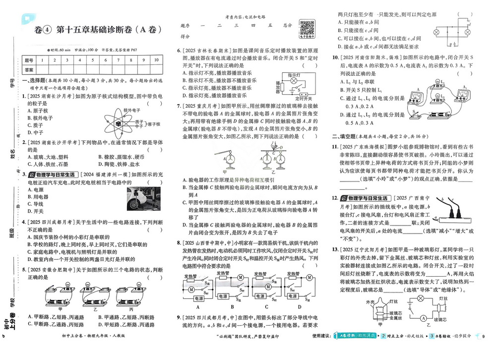 上一篇:人教版九年级上册物理第十五章测试卷四