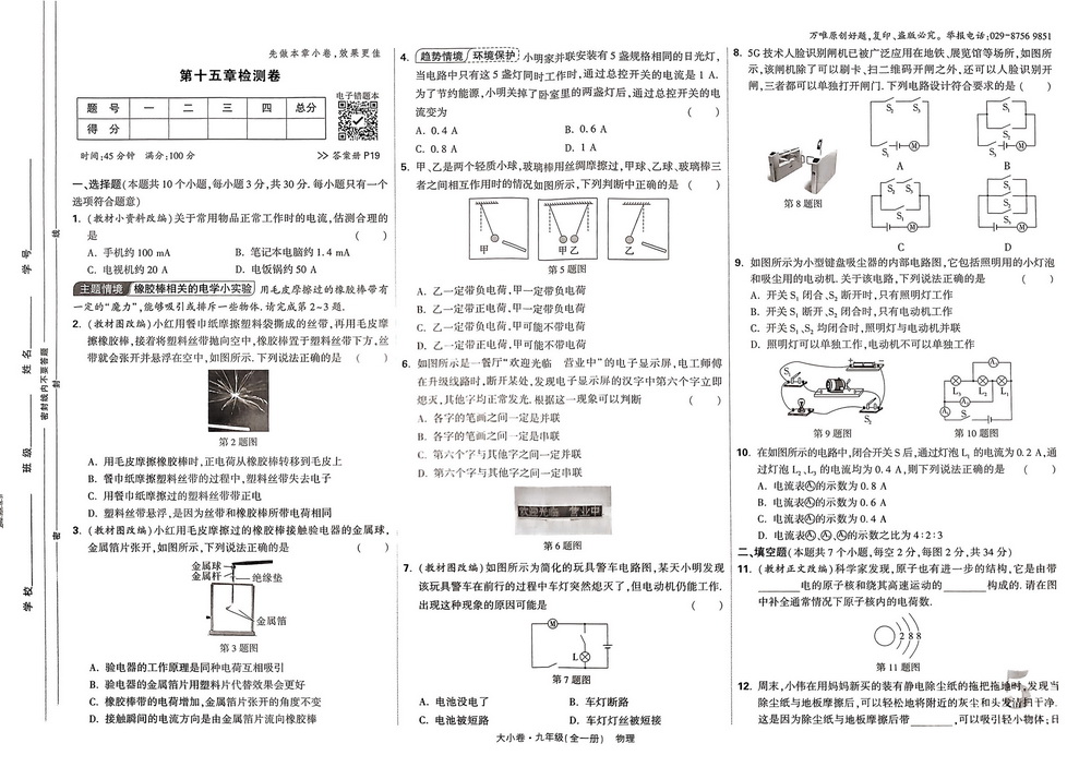 上一篇:人教版九年级上册物理第十五章测试卷七