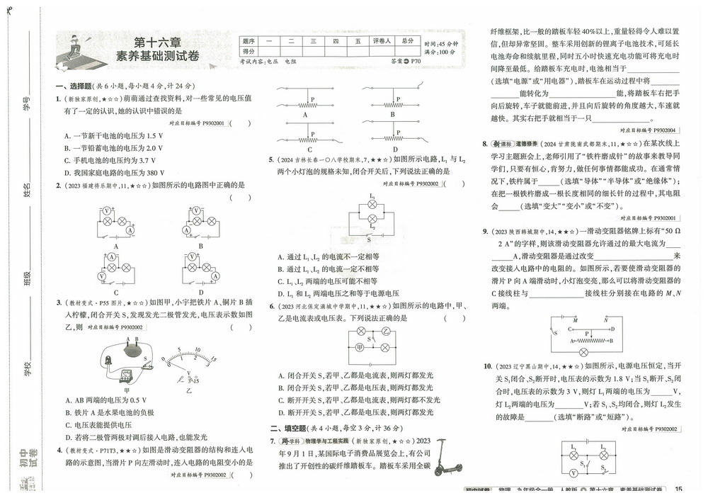 上一篇:人教版九年级上册物理第十六章测试卷二