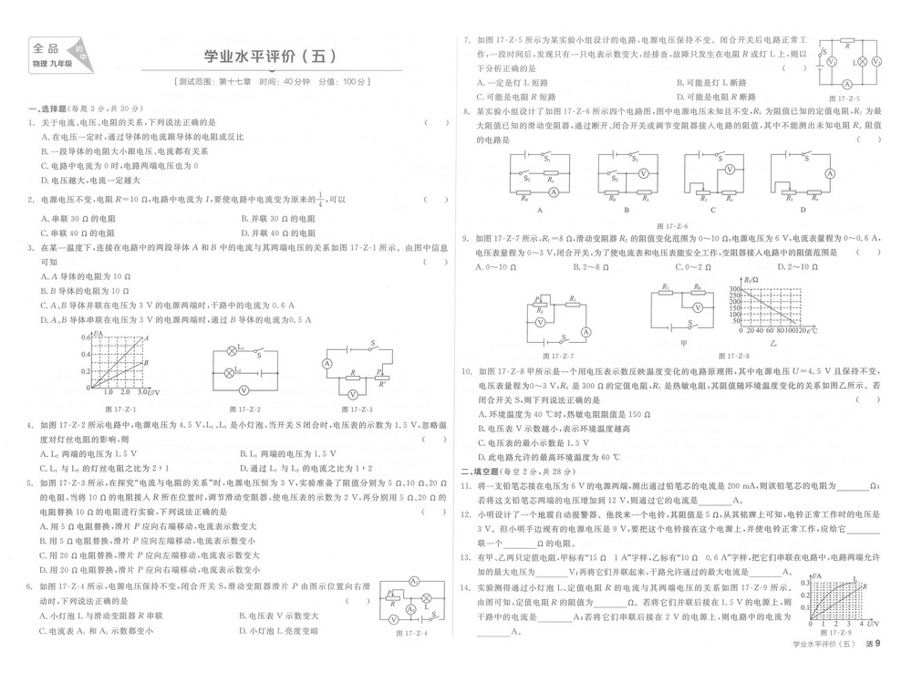 上一篇:人教版九年级上册物理第十七章测试卷六