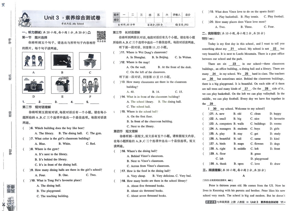 新教材人教版七年级上册英语Unit7测试卷三