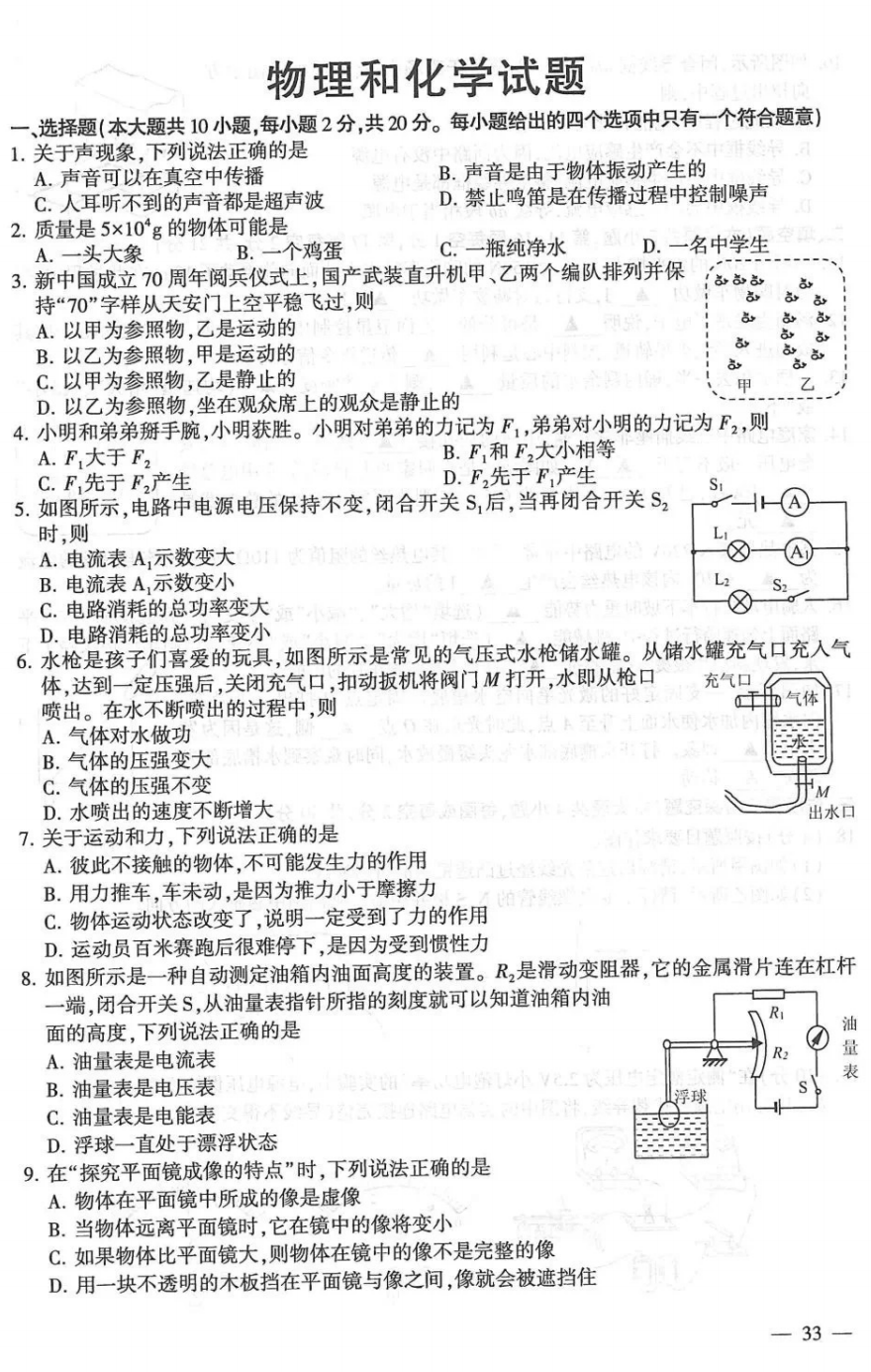 2022年贵州省铜仁市初中学业水平考试物理试卷