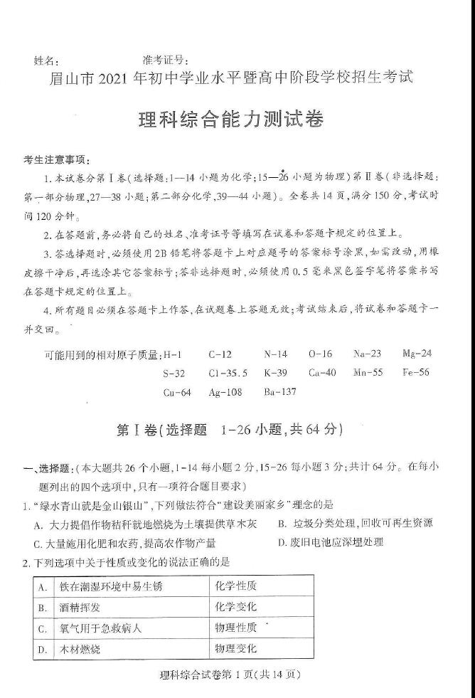上一篇:2021年天津市初中毕业生学业考试物理试题