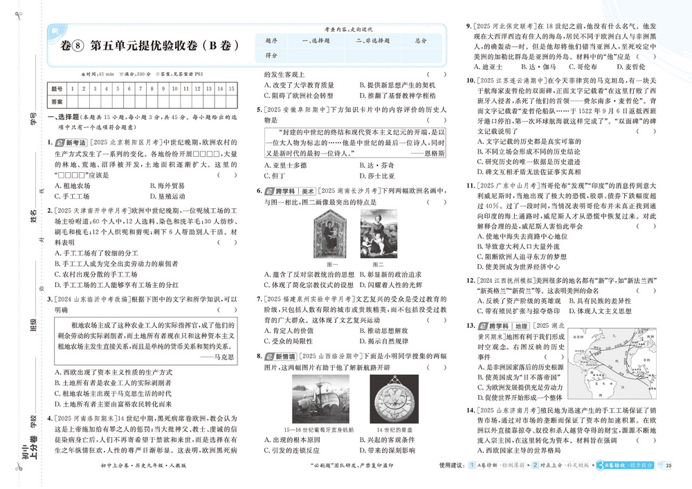 人教版九年级上册历史第五单元测试卷二