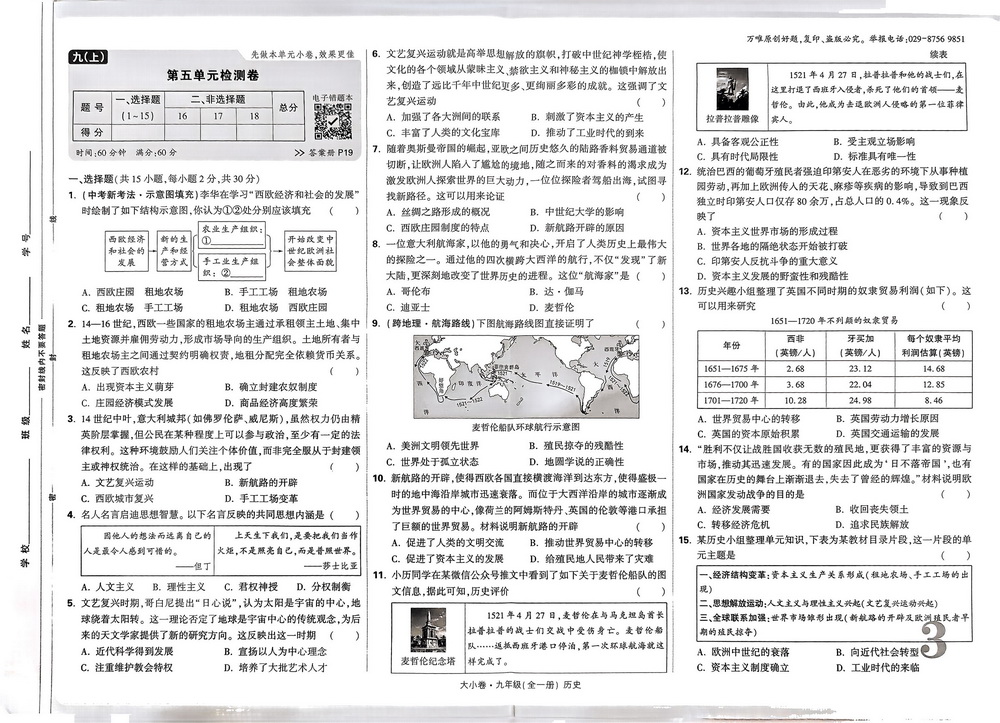 人教版九年级上册历史第五单元测试卷六