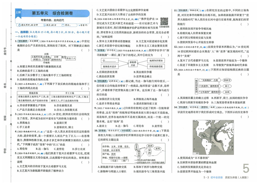 上一篇:人教版九年级上册历史第五单元测试卷六