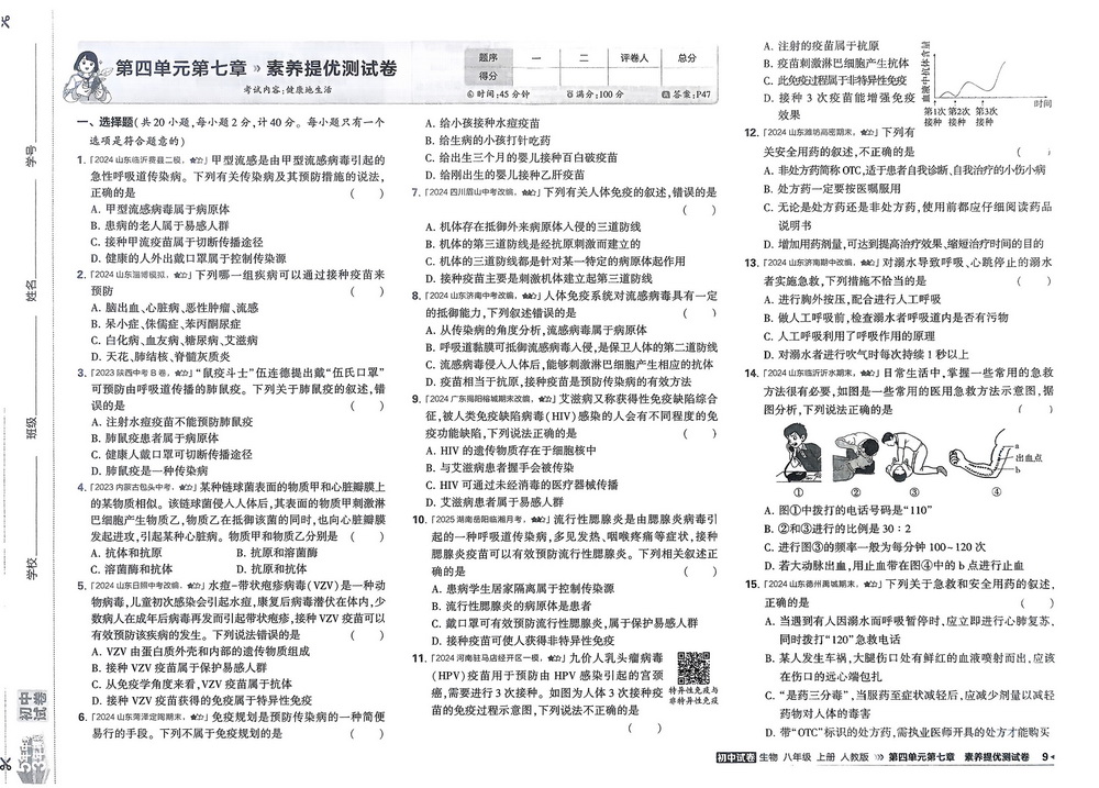 新教材人教版八年级上册生物第四单元第七章测试卷四