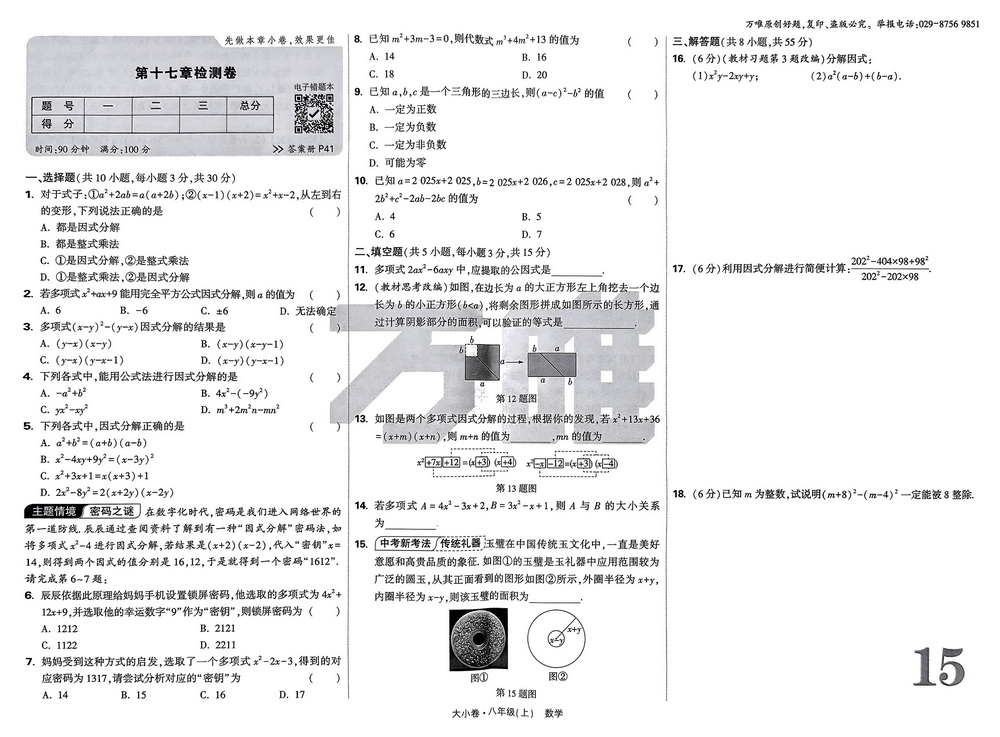 新教材人教版八年级上册数学第十七章测试卷五