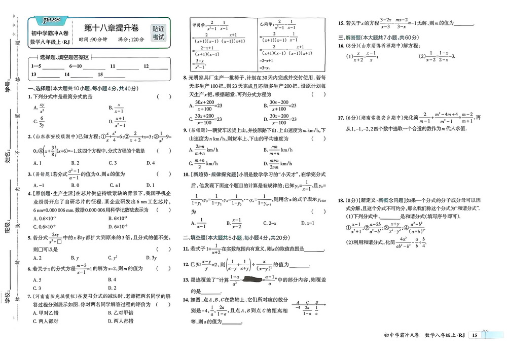 上一篇:新教材人教版八年级上册数学第十八章测试卷六