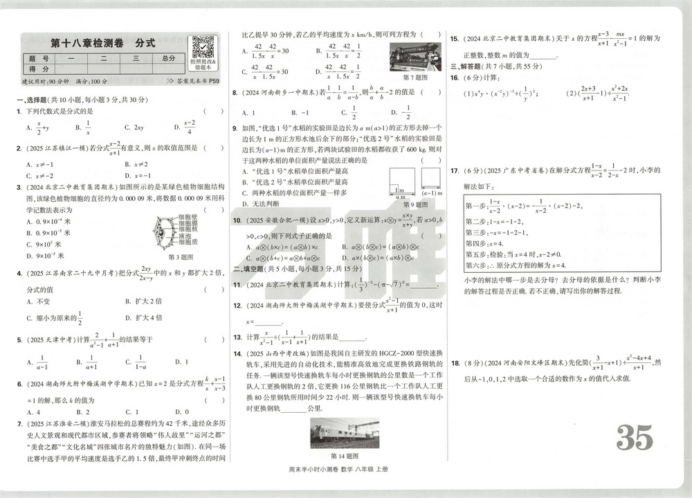 上一篇:新教材人教版八年级上册数学第十八章测试卷七