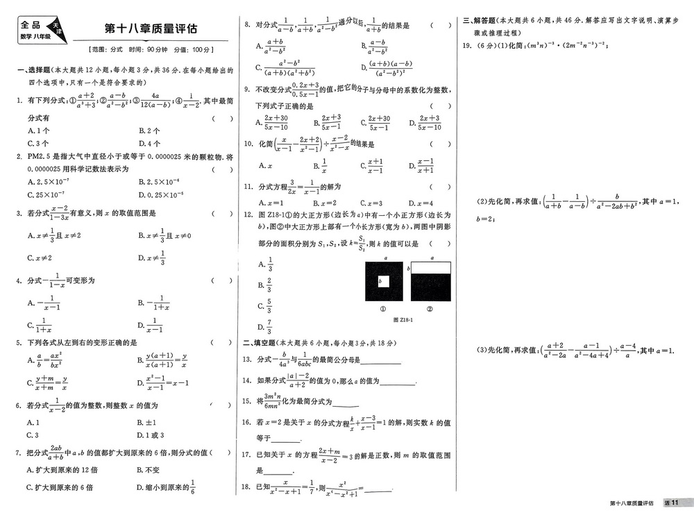 上一篇:新教材人教版八年级上册数学第十八章测试卷八
