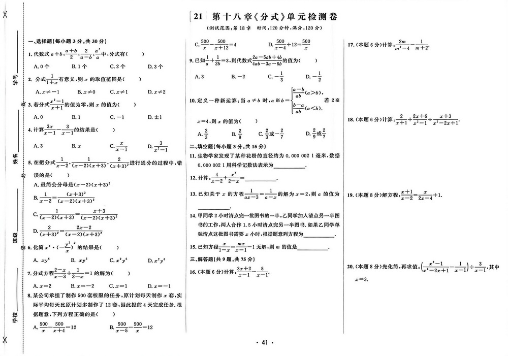 上一篇:新教材人教版八年级上册数学第十八章测试卷九