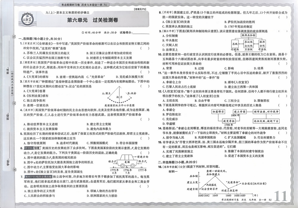 人教版九年级上册历史第六单元测试卷七