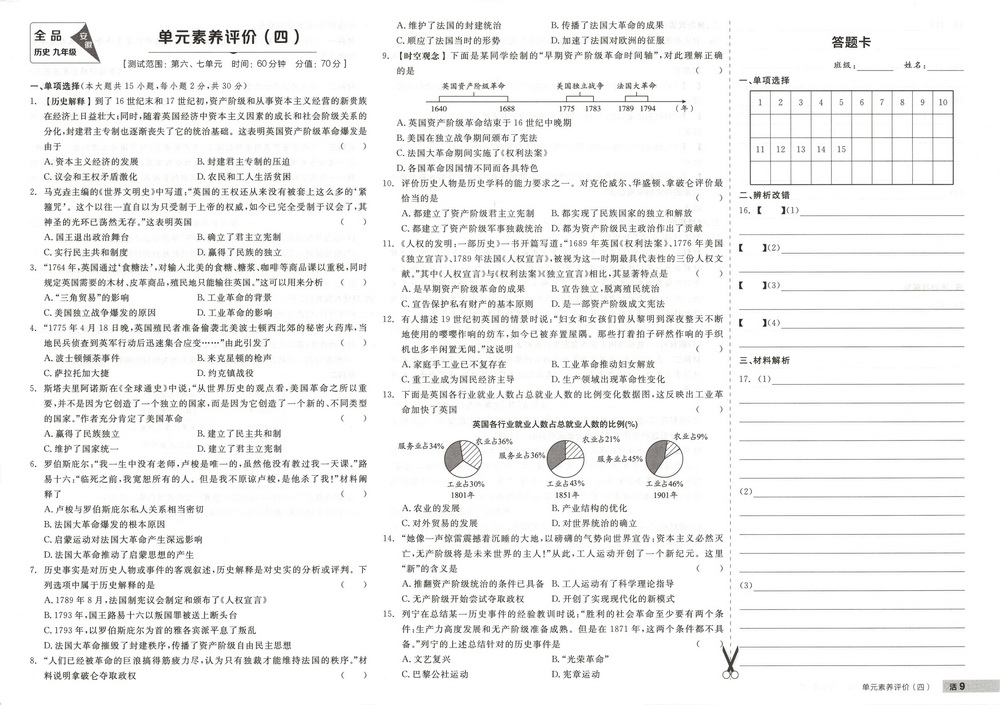 人教版九年级上册历史第七单元测试卷九