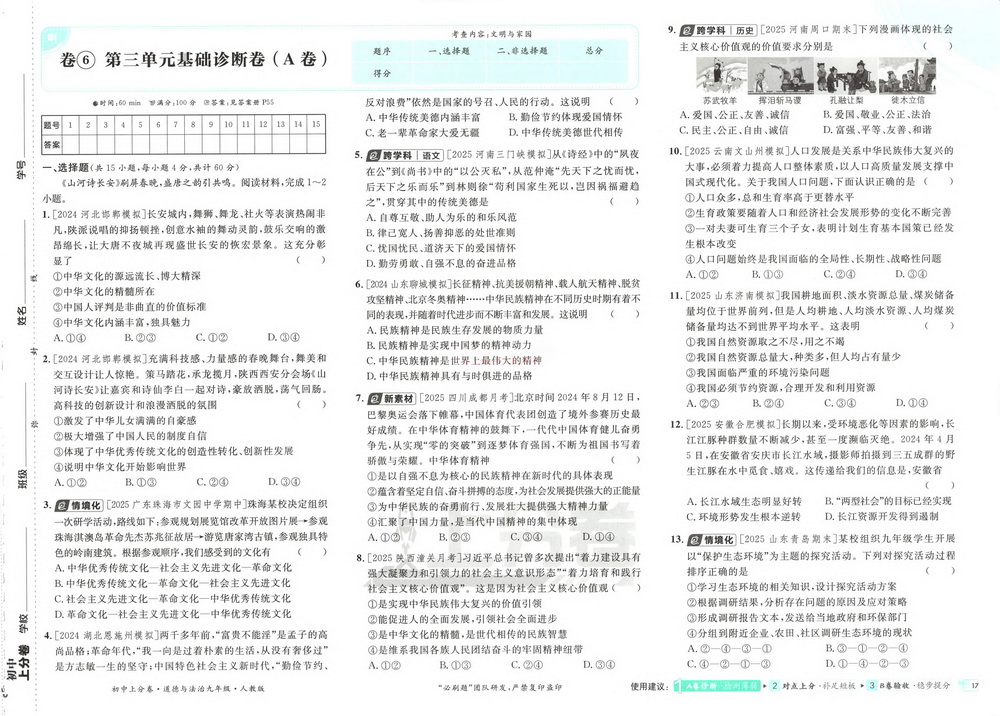 人教版九年级上册道德与法治第三单元测试卷六
