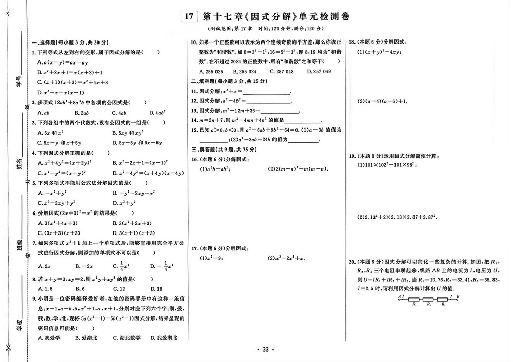 上一篇:新教材人教版八年级上册数学第十七章测试卷九