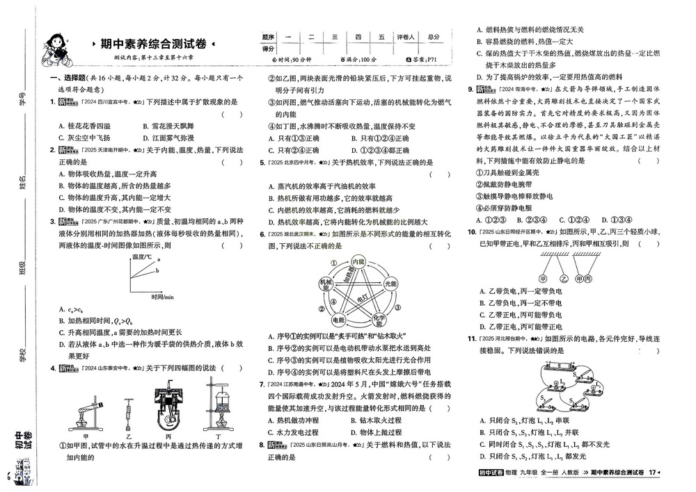 人教版九年级上册物理期中测试卷一