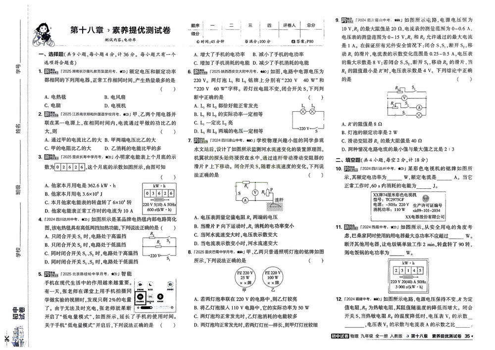 上一篇:人教版九年级下册物理第十八章测试卷一
