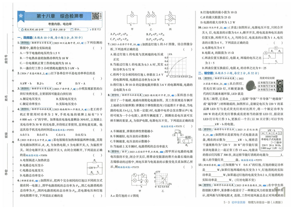 上一篇:人教版九年级下册物理第十八章测试卷五