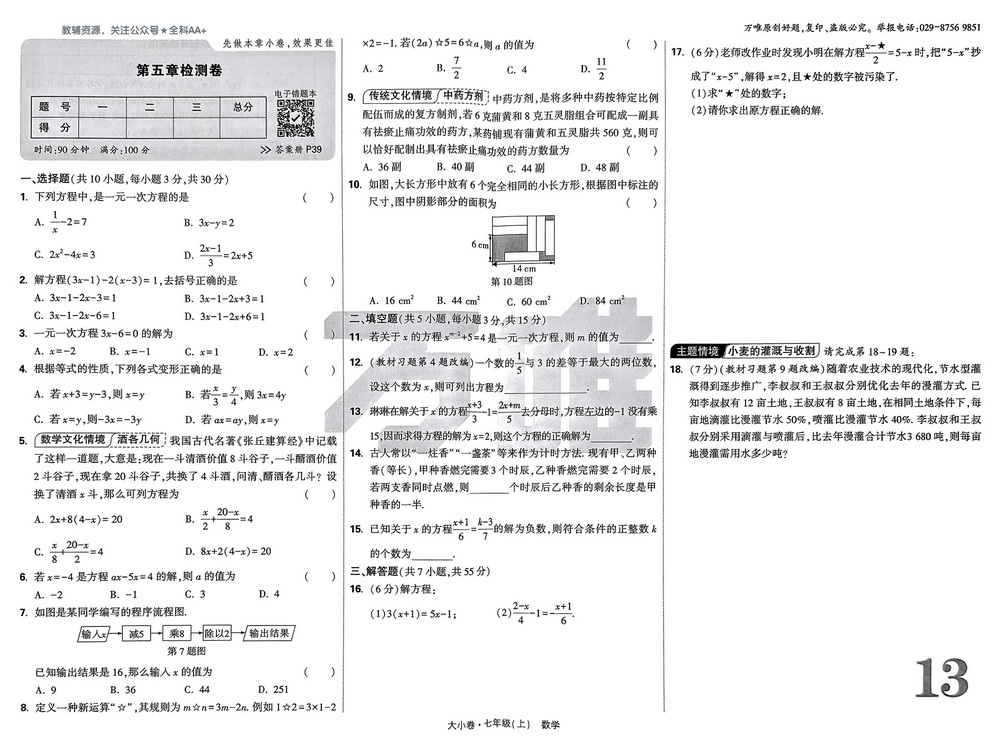 上一篇:新教材人教版七年级上册数学第五章测试卷四
