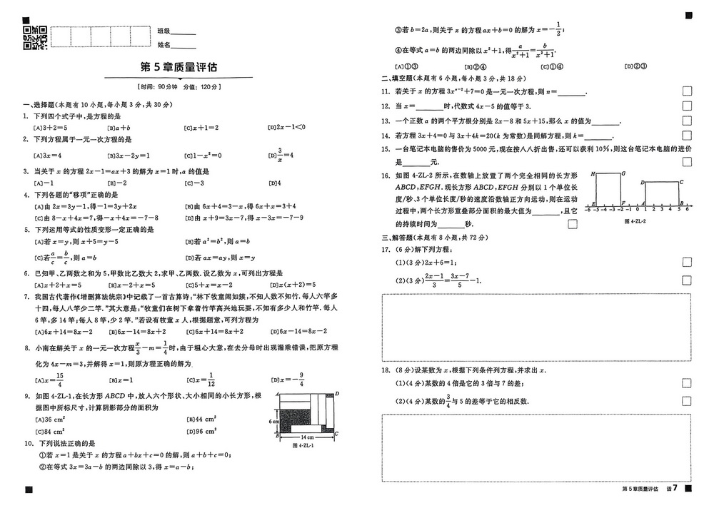 上一篇:新教材人教版七年级上册数学第五章测试卷九