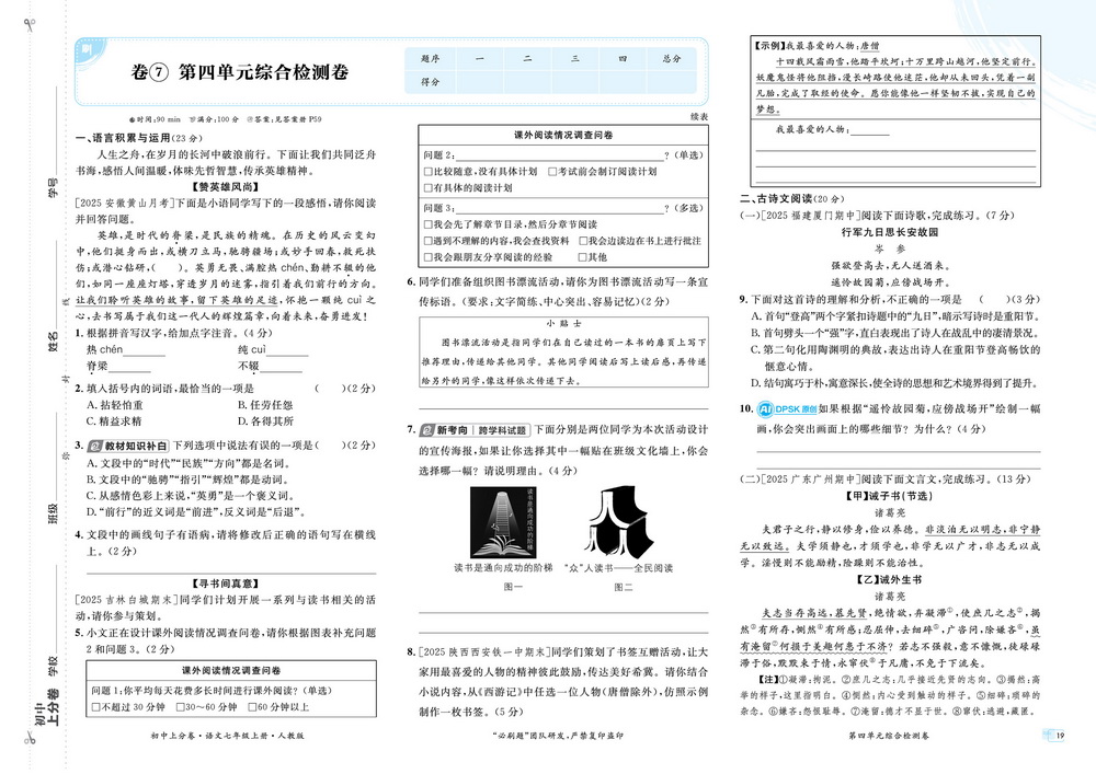 上一篇:新教材人教版七年级上册语文第四单元测试卷一