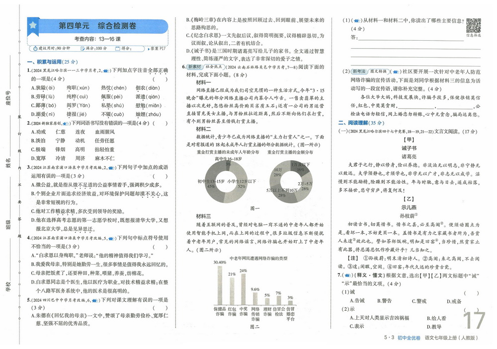 上一篇:新教材人教版七年级上册语文第四单元测试卷三