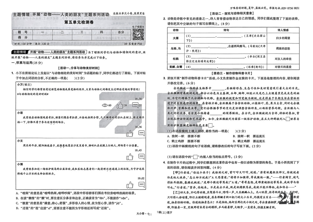 时间:120分钟 / 总分:120分 | 2025-11-01 08:08:00