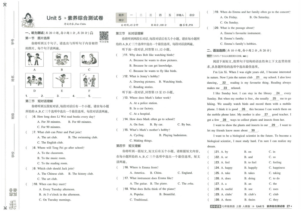 上一篇:新教材人教版七年级上册英语Unit4测试卷四