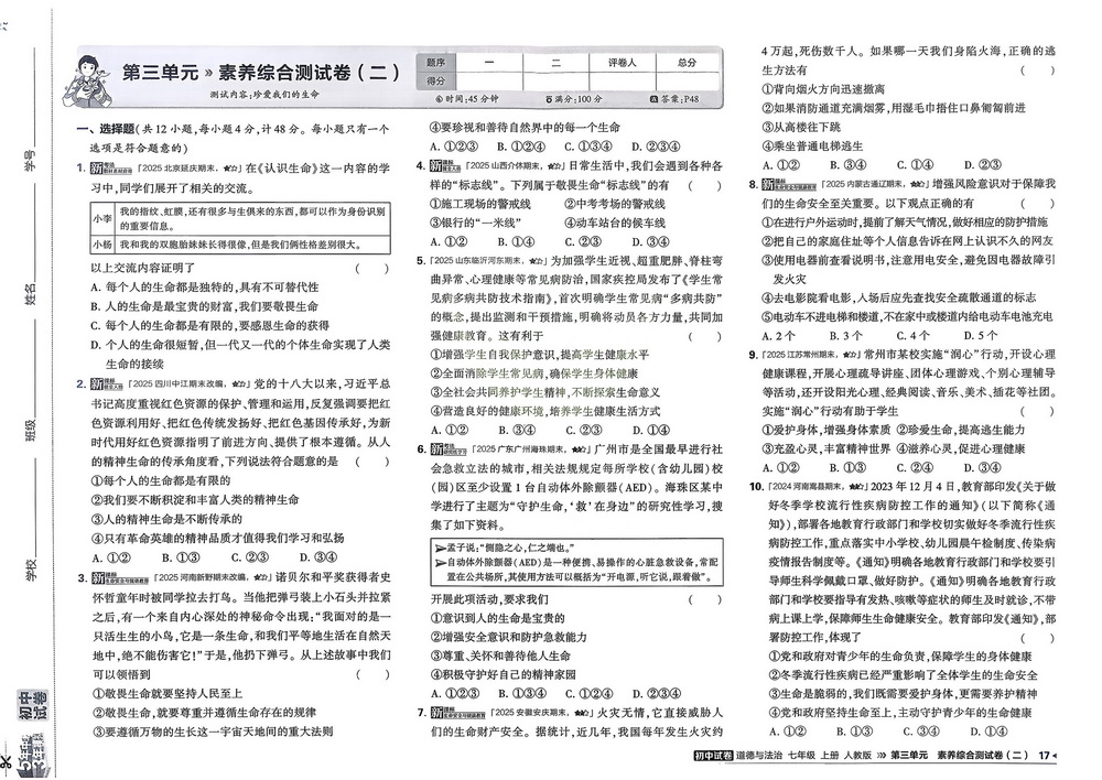 上一篇:新教材人教版七年级上册道法第三单元测试卷一