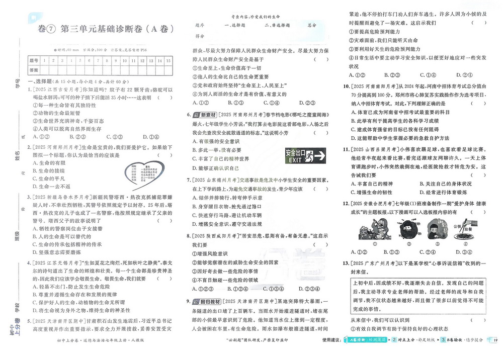 新教材人教版七年级上册道法第三单元测试卷三
