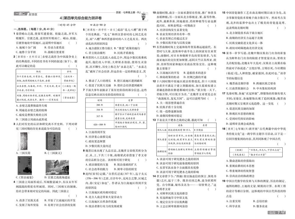 上一篇:新教材人教版七年级上册历史第四单元测试卷五