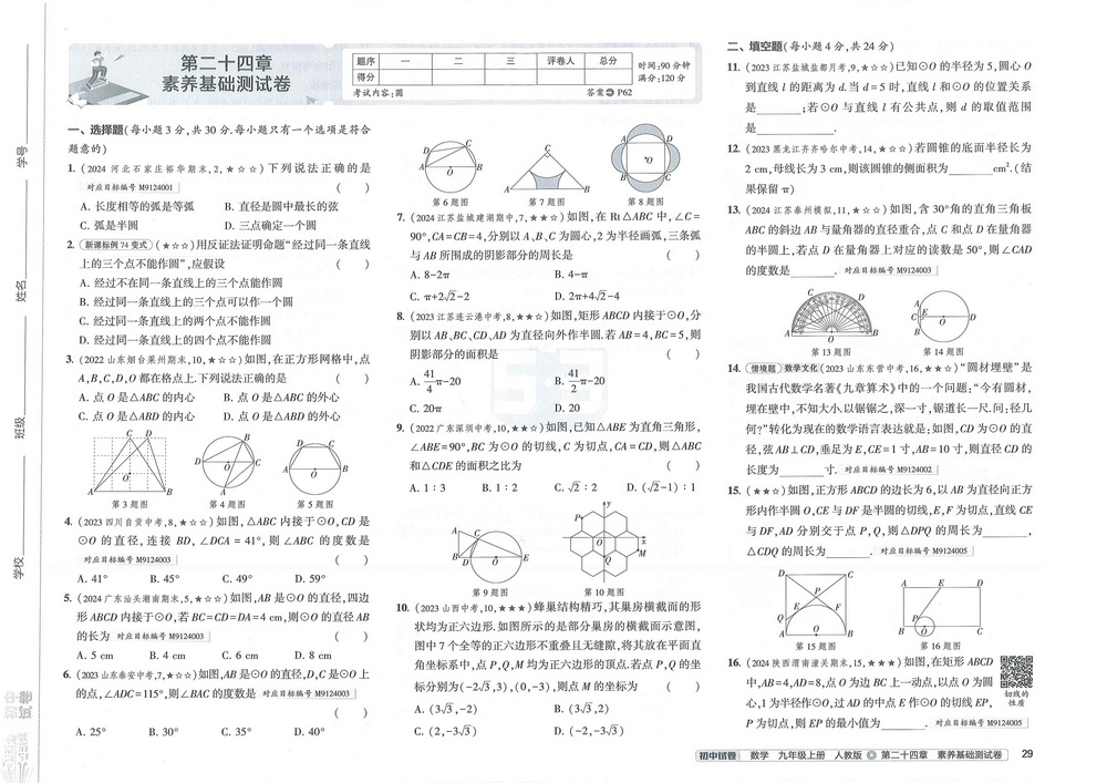 人教版九年级上册数学第二十四章测试卷四
