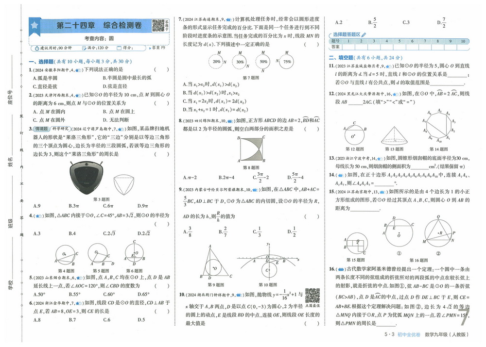 上一篇:人教版九年级上册数学第二十四章测试卷六
