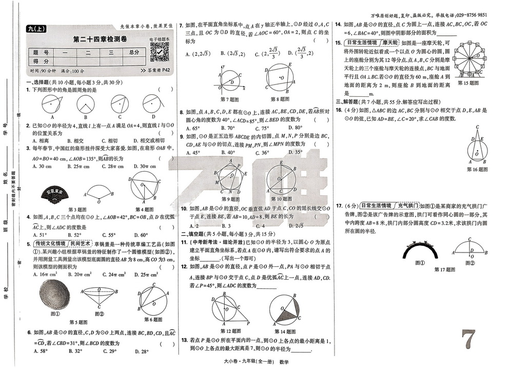上一篇:人教版九年级上册数学第二十四章测试卷七