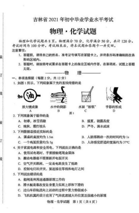 2022年贵州省铜仁市初中学业水平考试物理试卷