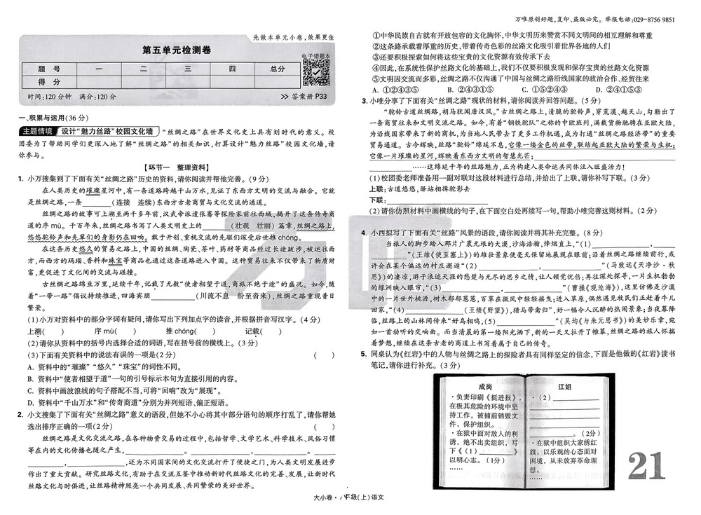 新教材人教版八年级上册语文第五单元测试卷五