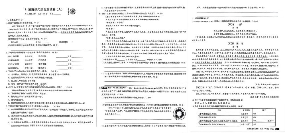 新教材人教版八年级上册语文期末测试卷二十五