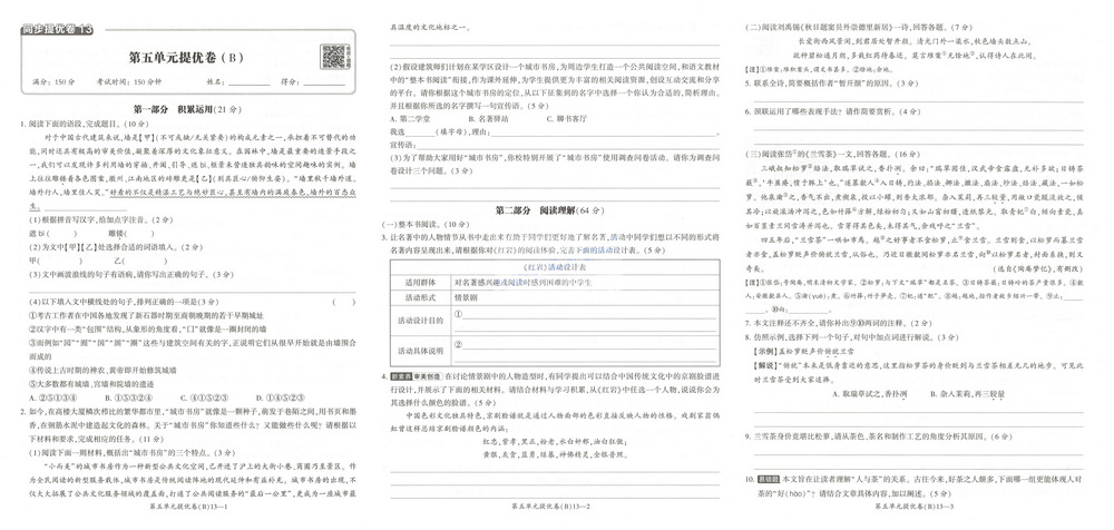 新教材人教版八年级上册语文第五单元测试卷十