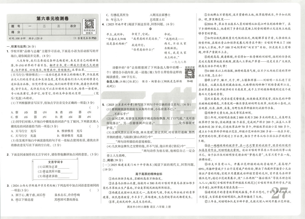 新教材人教版八年级上册语文期末测试卷二十五