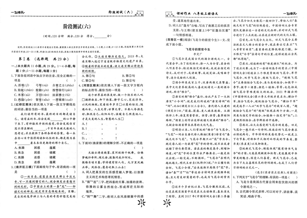 新教材人教版八年级上册语文第六单元测试卷六