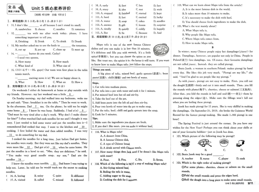 上一篇:新教材人教版八年级上册英语Unit5测试卷五