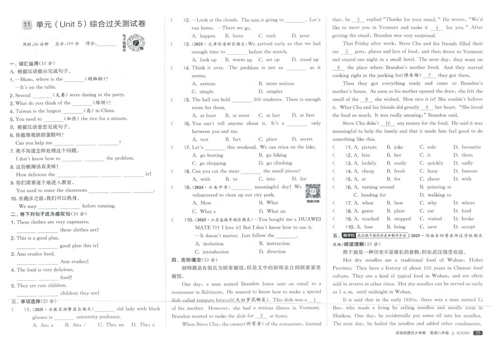 上一篇:新教材人教版八年级上册英语Unit5测试卷六