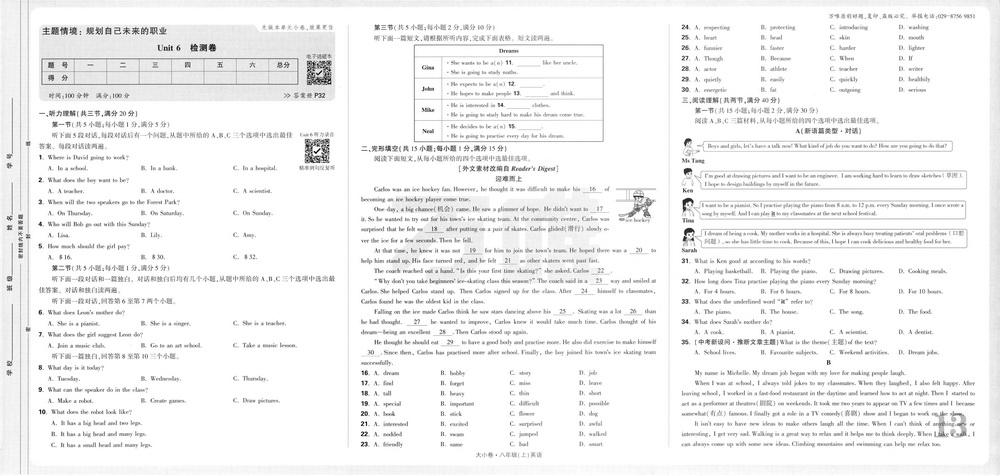 上一篇:新教材人教版八年级上册英语Unit6测试卷四