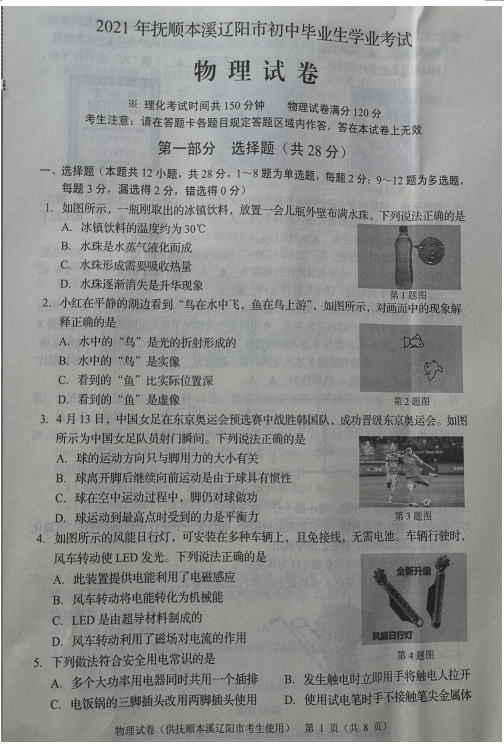 2021年辽宁本溪市初中毕业生学业考试物理试题