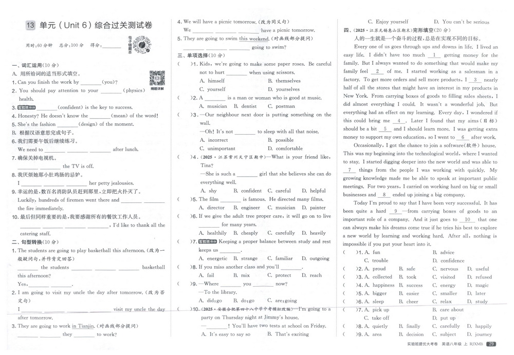 新教材人教版八年级上册英语期末测试卷十三