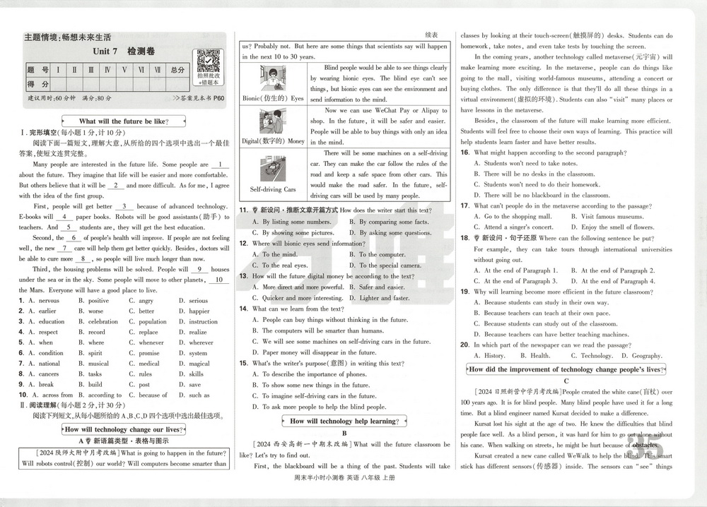 上一篇:新教材人教版八年级上册英语Unit7测试卷三