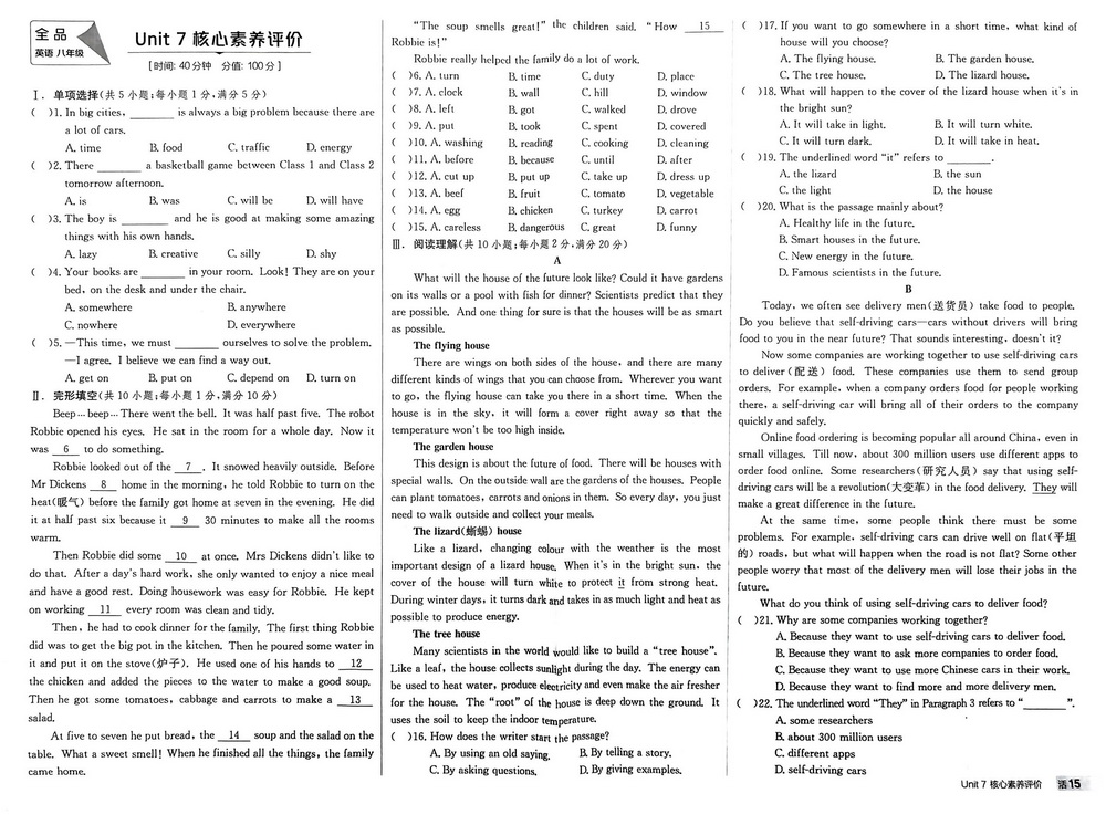 上一篇:新教材人教版八年级上册英语Unit7测试卷五