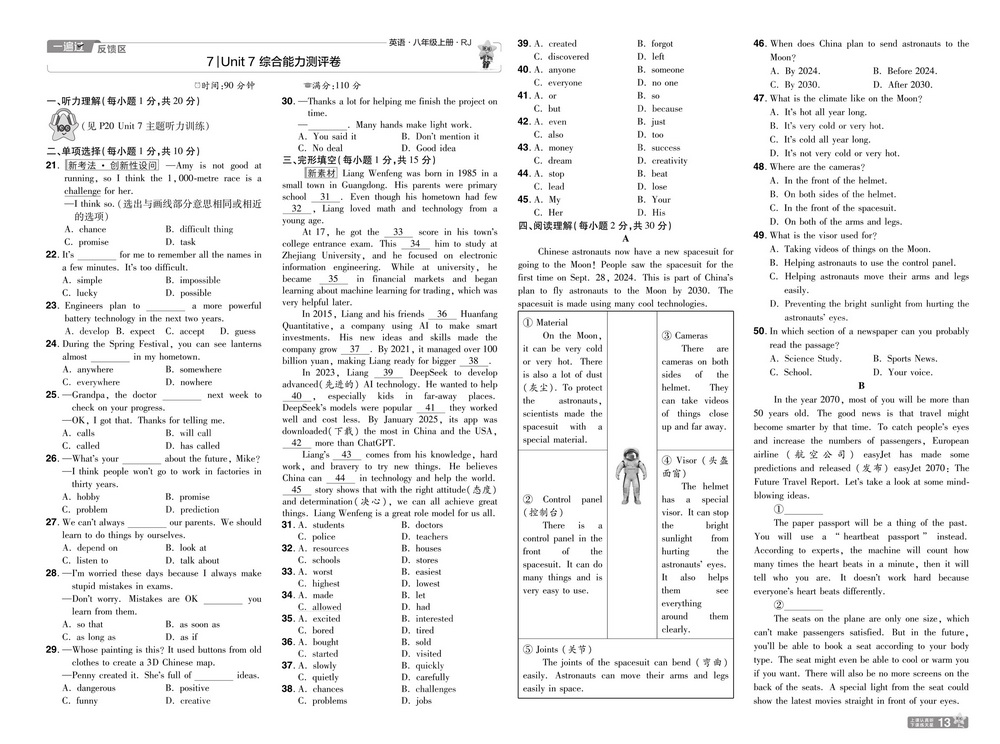 上一篇:新教材人教版八年级上册英语Unit7测试卷六